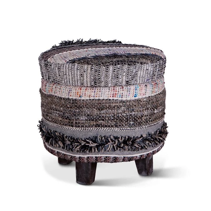 Solid wood turned legs, solid wood frames, and varied and vibrant fabrics highlight the Algiers collection. Upholstered in fabric of multiple designs stitched together for a fun, mismatched look, the stool’s seat has a foam cushion for comfort. This stool features a removable lid for a small, hidden storage area. This stool is pre-assembled.