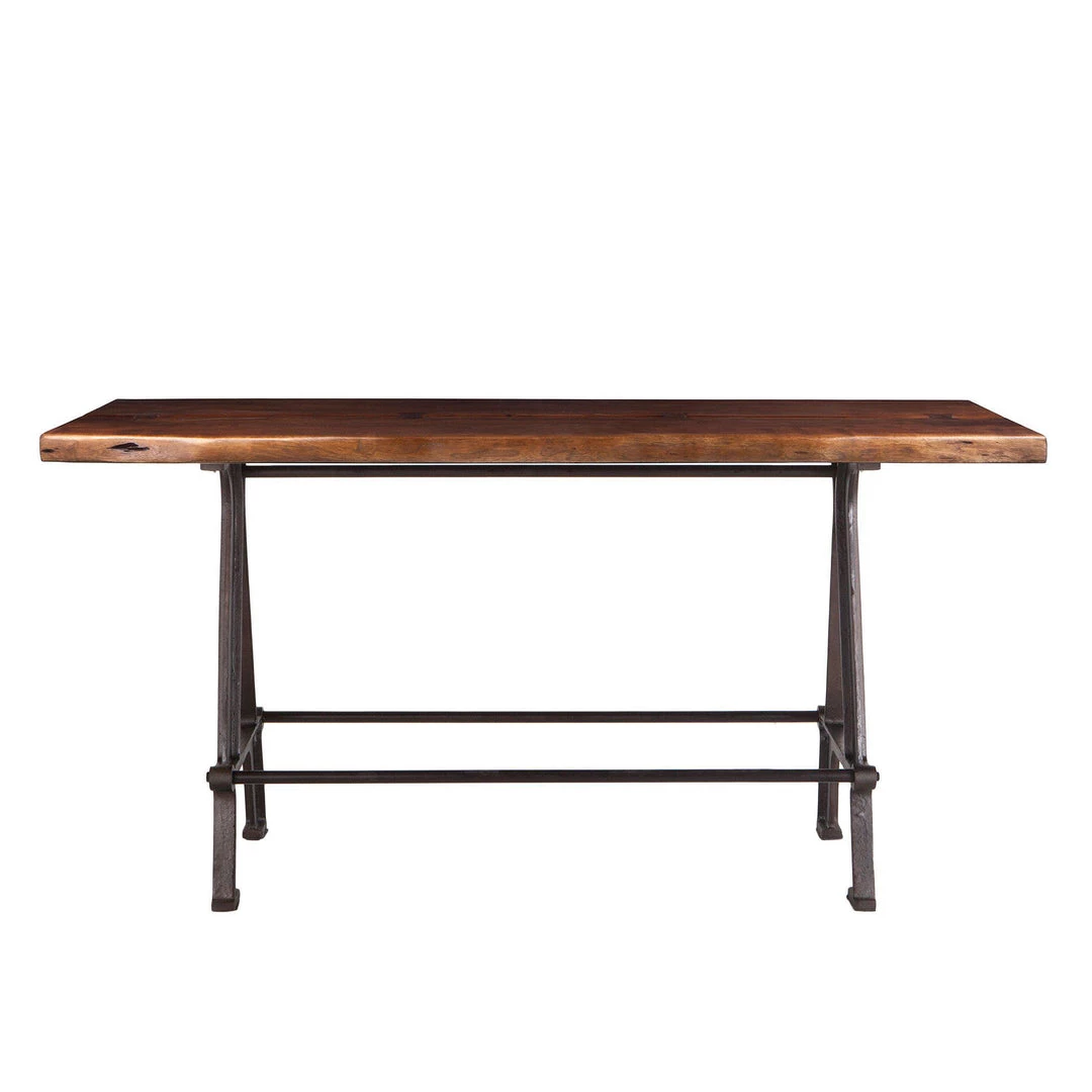 Recycled wood and iron fuse together in our Artezia collection to create eclectic pieces of furniture. This handcrafted gathering table has an acacia wood table top featuring clean lines, and a water-based catalyzed walnut finish.