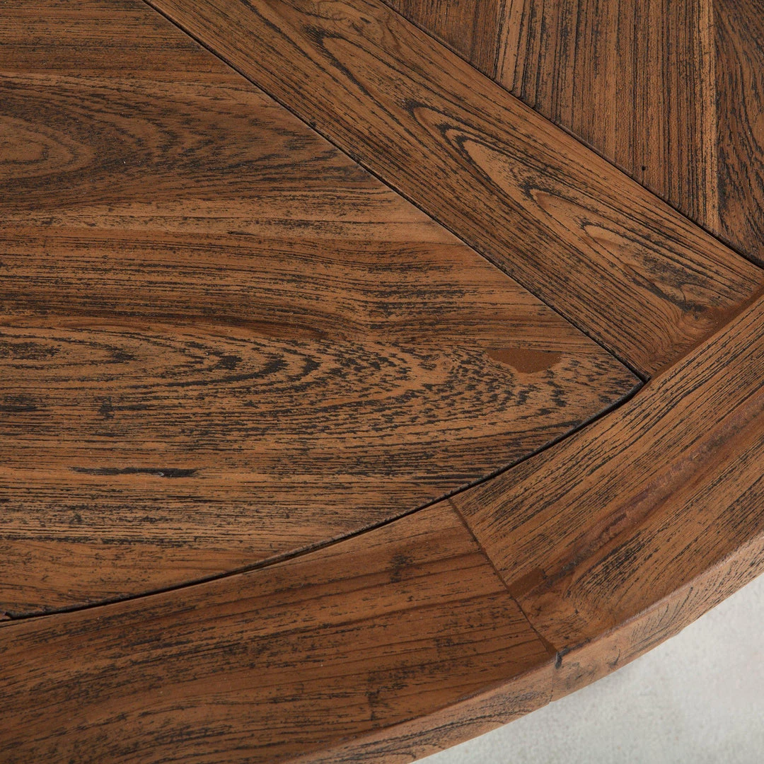 - 42-inch diameter coffee table with solid reclaimed teak wood top