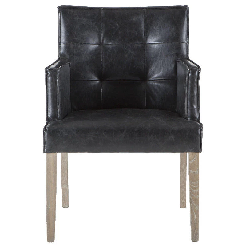 With the eco-friendly black leather wrapped around the solid hardwood frame, this chair is both modern and vintage all in one piece! The faux leather seat back features a square, stitched design along the front, giving the chair a unique texture that is sure to stand out.
