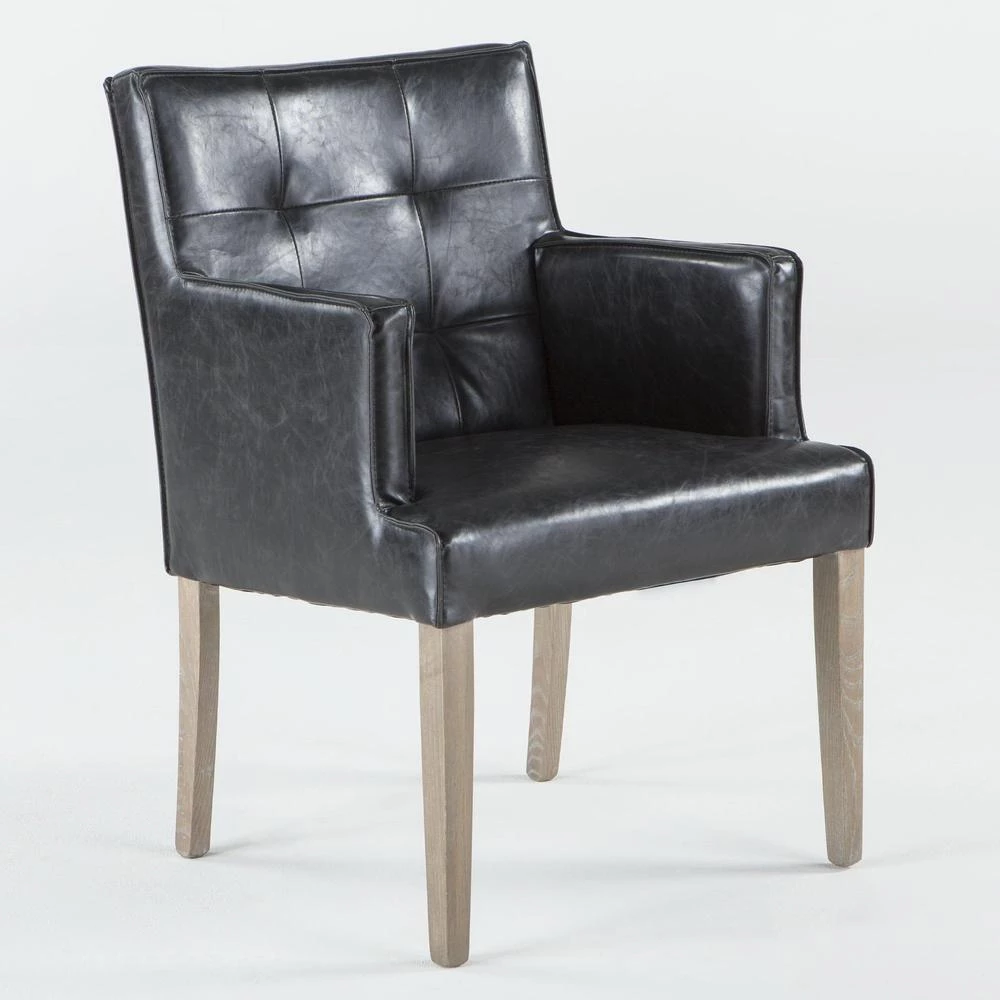 The light, natural looking style of the Napoleon finish on the solid wood legs complements a variety of solid wood and mixed media finishes. This armchair is pre-assembled.