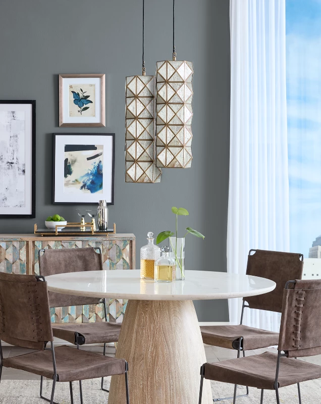 - Antique brass accent rods create a fun and unique pattern on the glass