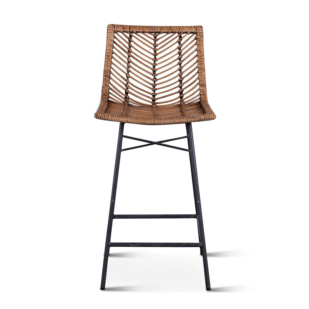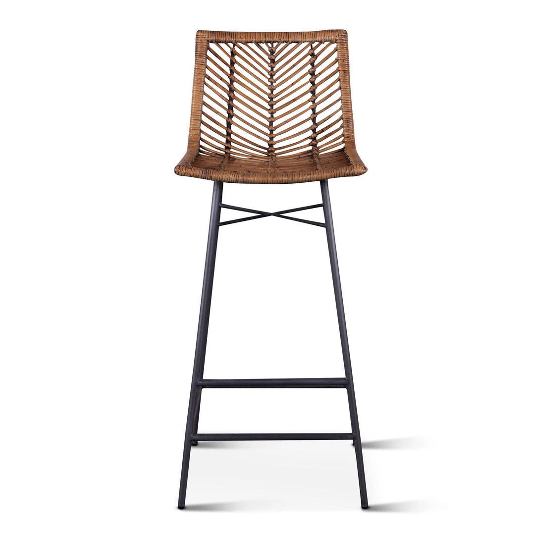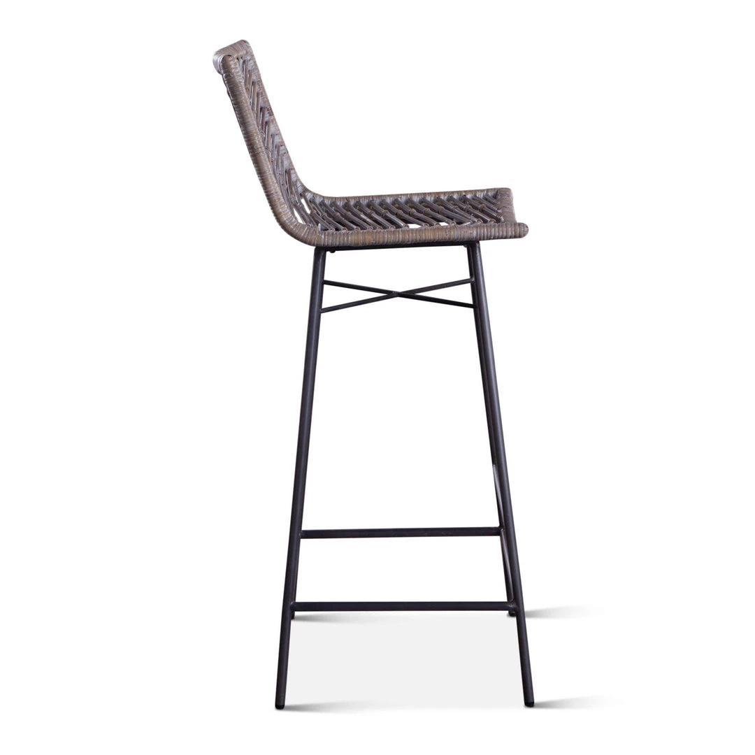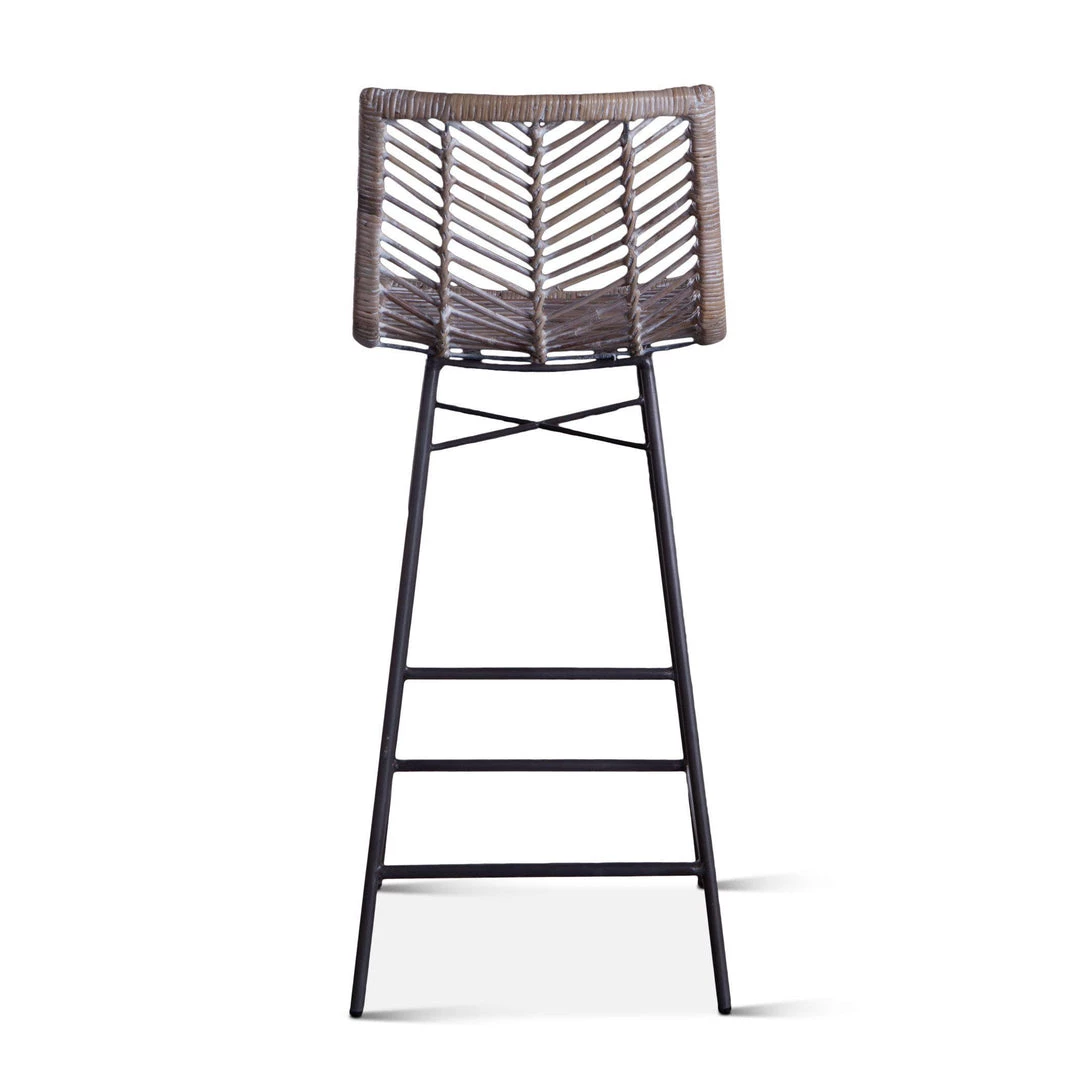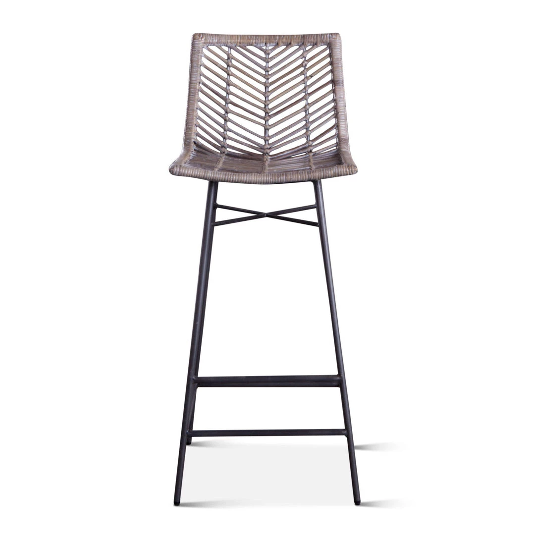 Minimalism fuses with South Asian bohemian design to create the Bali collection. Casual enough for a beachfront oasis, this beautiful yet simple bar-height chair is fashioned from woven kubu rattan. The neutral color of this bar chair and the metal anthracite finish on the iron legs both allow for it to work beautifully with almost any type of table or decor. The bar chair requires some light assembly.