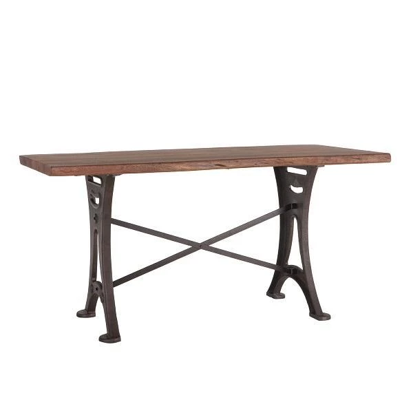 - Farmhouse style trestle base made from recycled cast iron with matte black finish