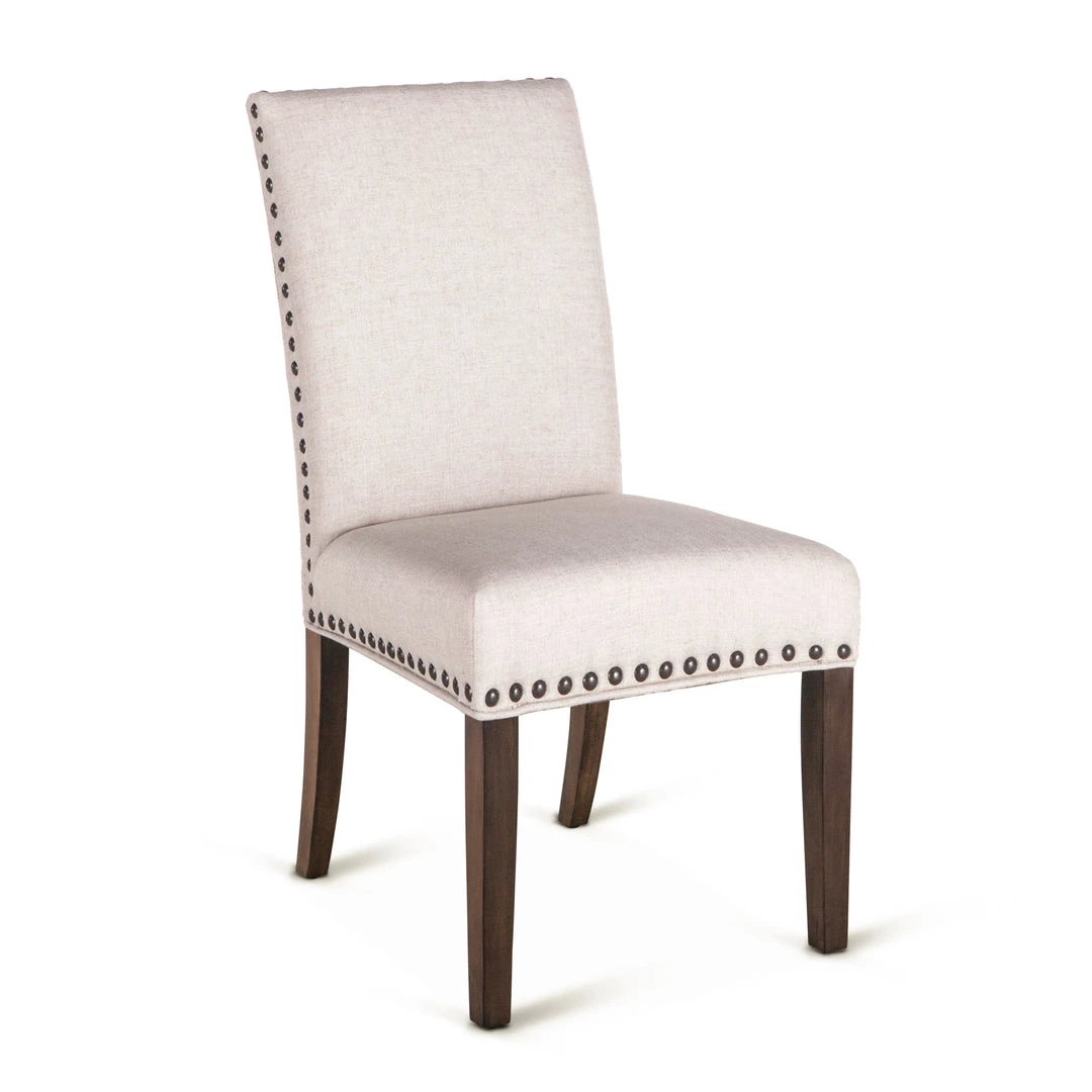 Our Bristol collection of dining chairs add comfort and casual elegance to your dining table or eat-in kitchen. Each chair in this collection boasts a solid hardwood frame upholstered in a linen, cotton and polyester blend fabric, with nailhead trim along the seat’s base.