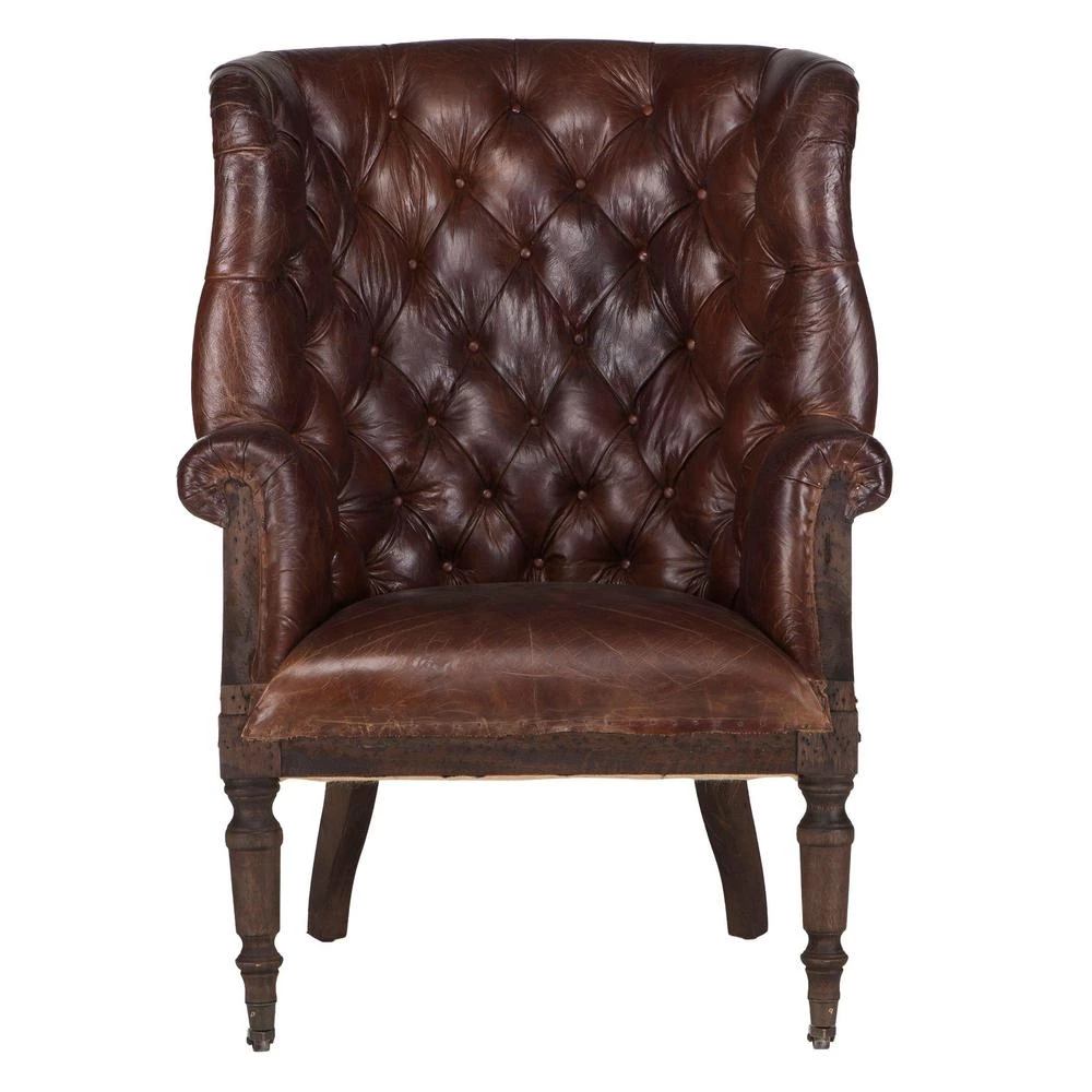 Reminiscent of a classic club chair, our Charles collection of traditionally designed arm chairs bring a luxurious look to any home. This Charles club chair is handcrafted in a vintage cigar leather and features a classic diamond-shaped button pattern along the seat back with a solid hardwood frame in classic walnut finish.