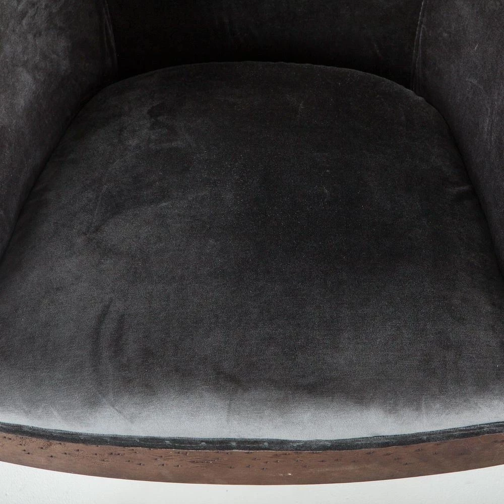 Reminiscent of a classic club chair, our Charles collection of traditionally designed arm chairs bring a luxurious look to any home. This Charles arm chair pairs a luxurious dark gray velvet upholstery with warm oak wood frame and legs. The curved cushion seat is molded for ultimate comfort while the hand upholstered seat showcases a delicate stitch work and deconstructed back exude a dark academia, European charm, making this chair the perfect addition to any library or living room. The curved back and armrests create a warm and inviting space. This beautiful pre-assembled Charles arm chair provides the perfect spot to read your favorite novel or engage in long conversations.