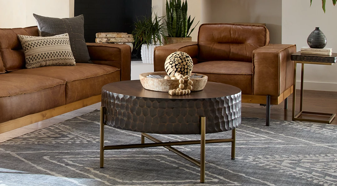 Perfect for placing in a formal living space or adorning your favorite reading nook, this beautiful and unique armchair will harmonize with any style of decor from industrial to contemporary. The cognac leather seat of the armchair has a soft, luxurious feel, and the high density foam cushion and heavy gauge sinuous spring, all combine to provide ultimate comfort. The four iron legs in matte finish feature caps to protect all types of flooring, while the oak panel base provides a vintage flair. This chair requires minor assembly.