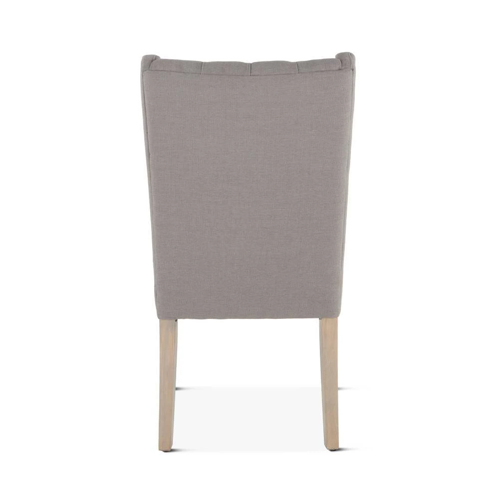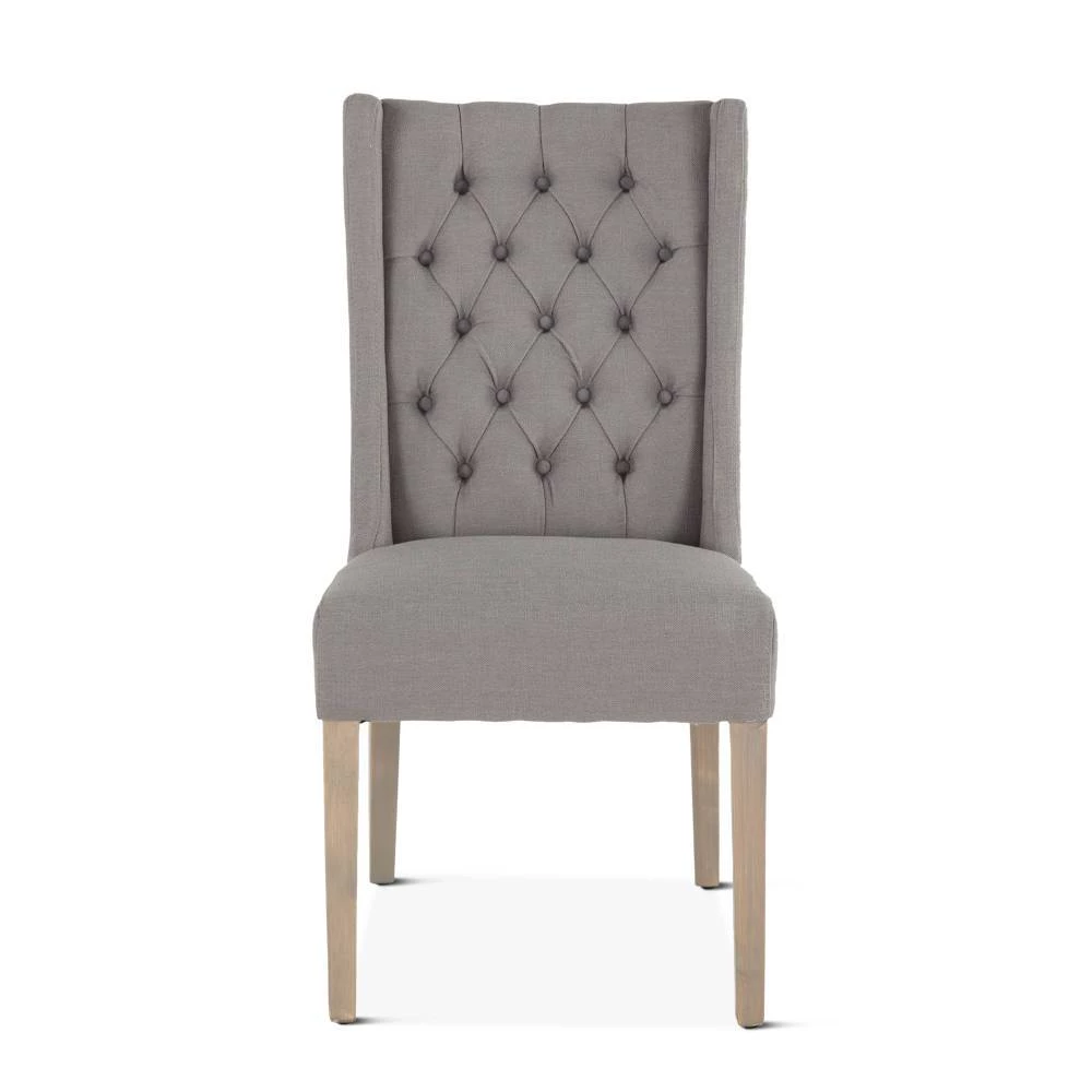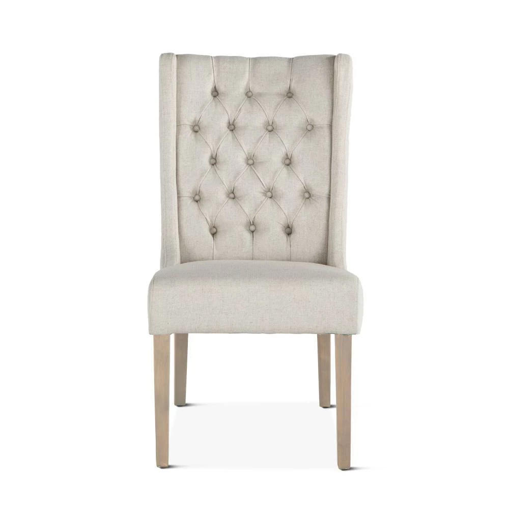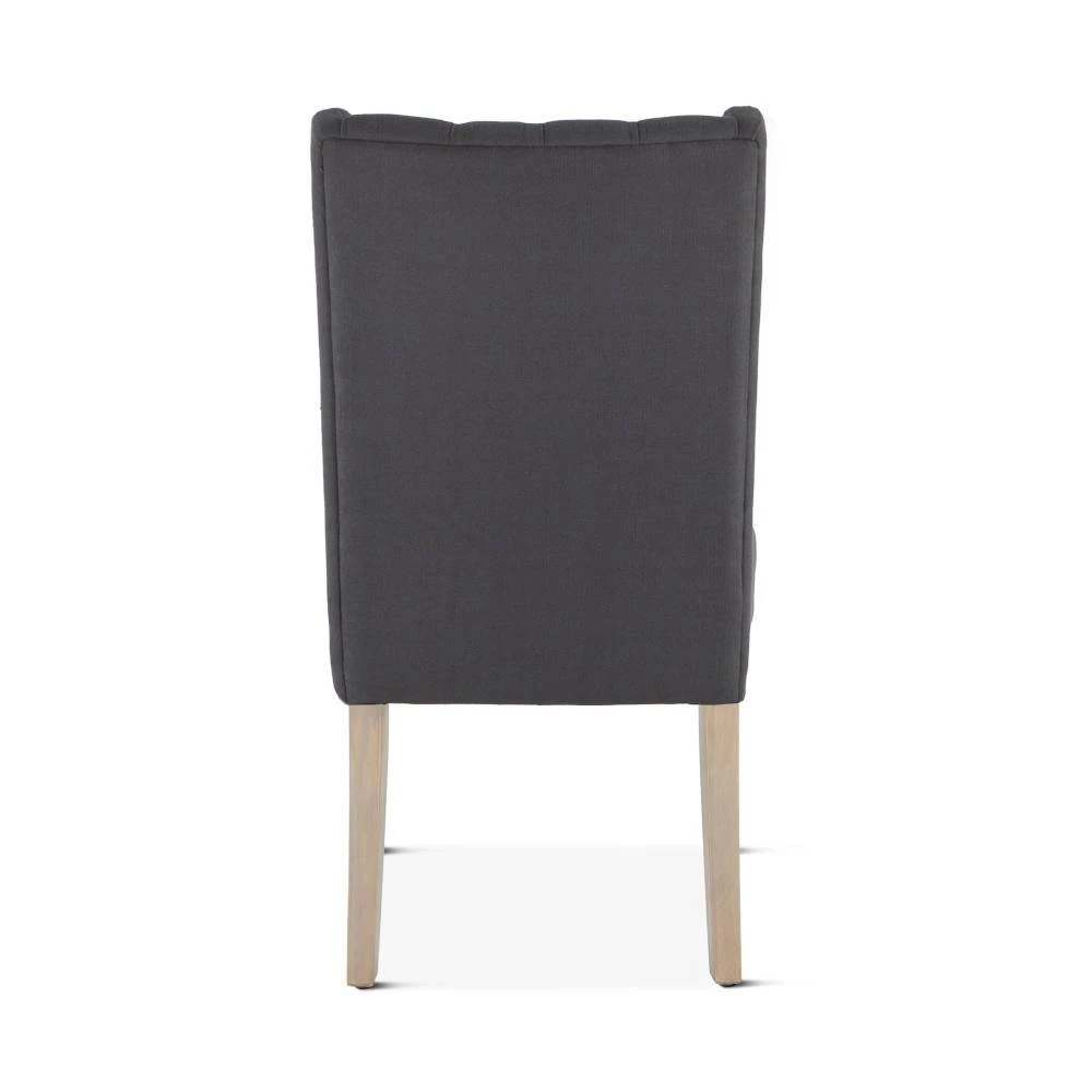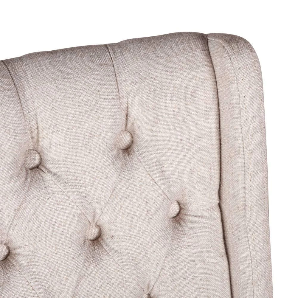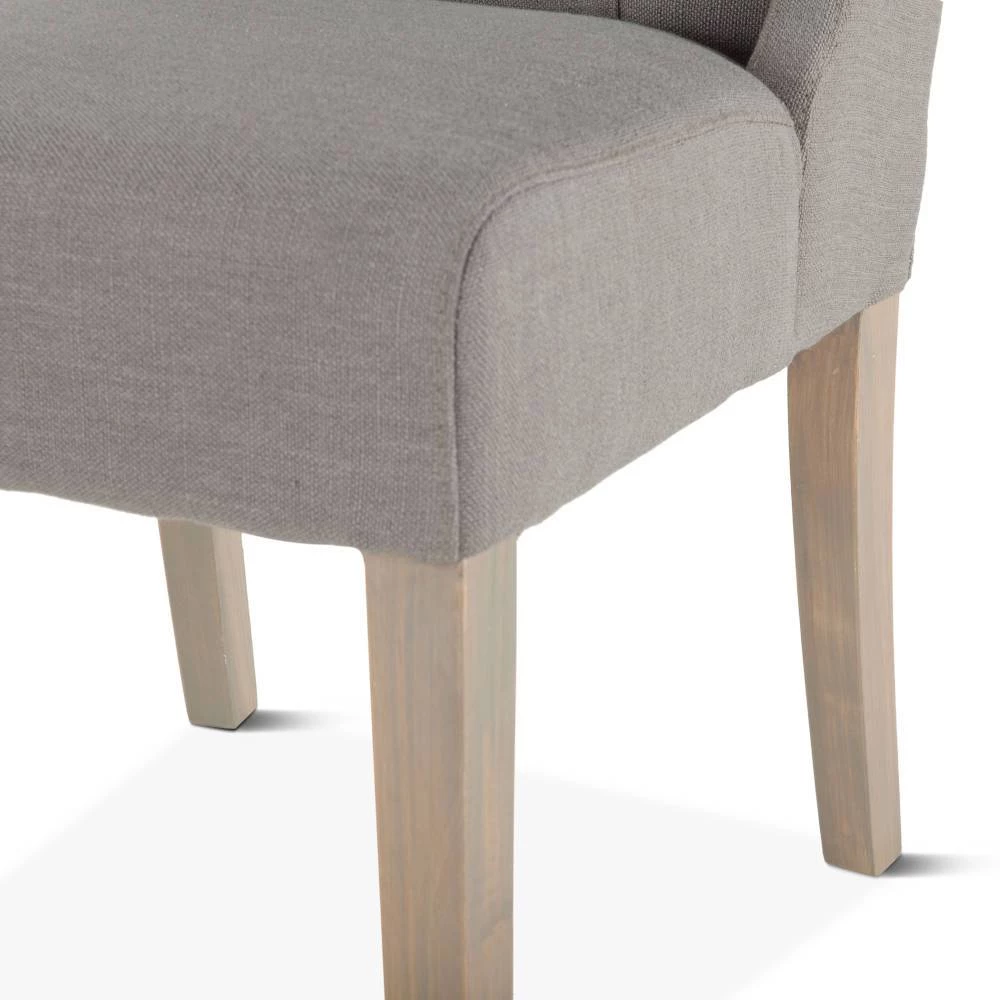 - Chair’s seat and seat back are upholstered in a linen, cotton and polyester blend fabric
