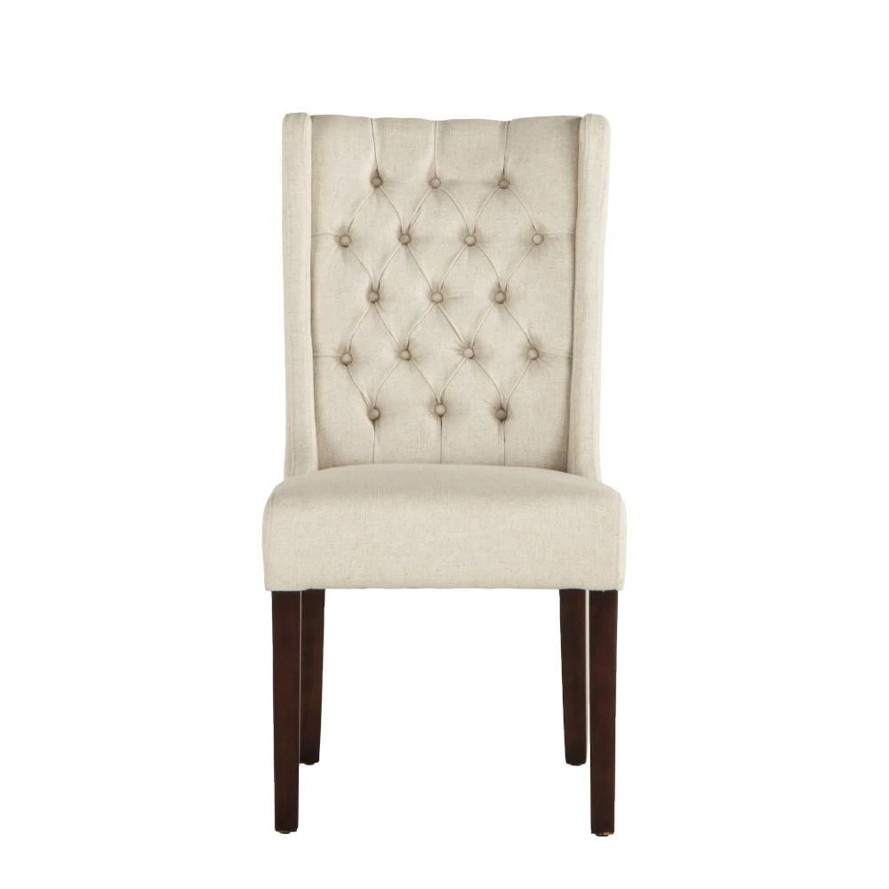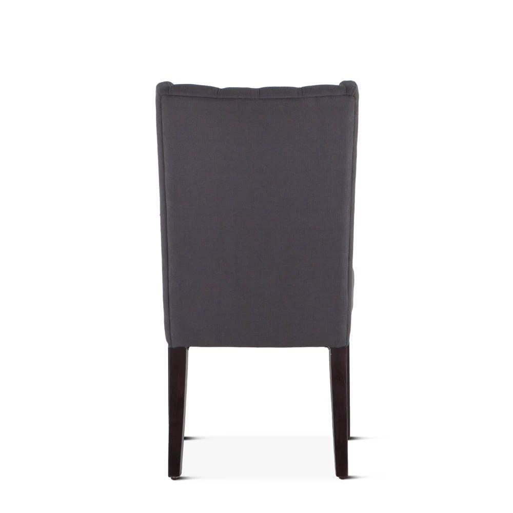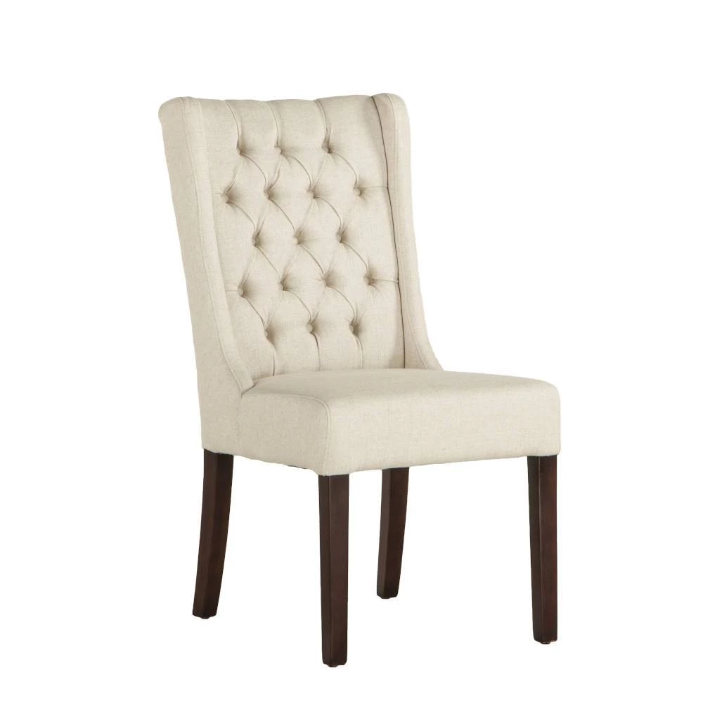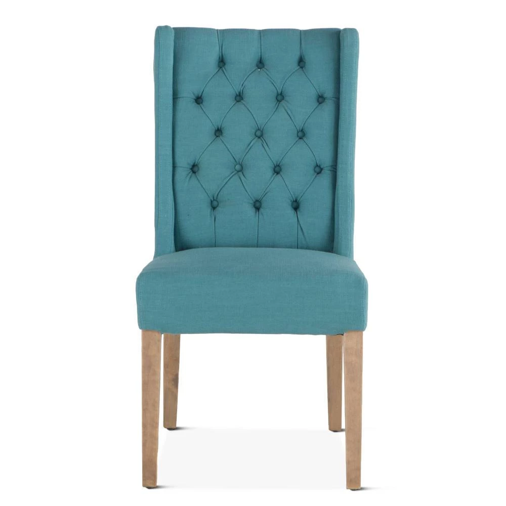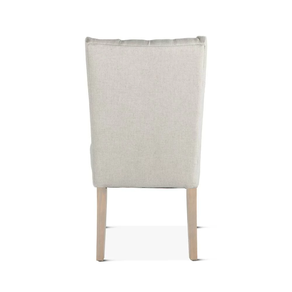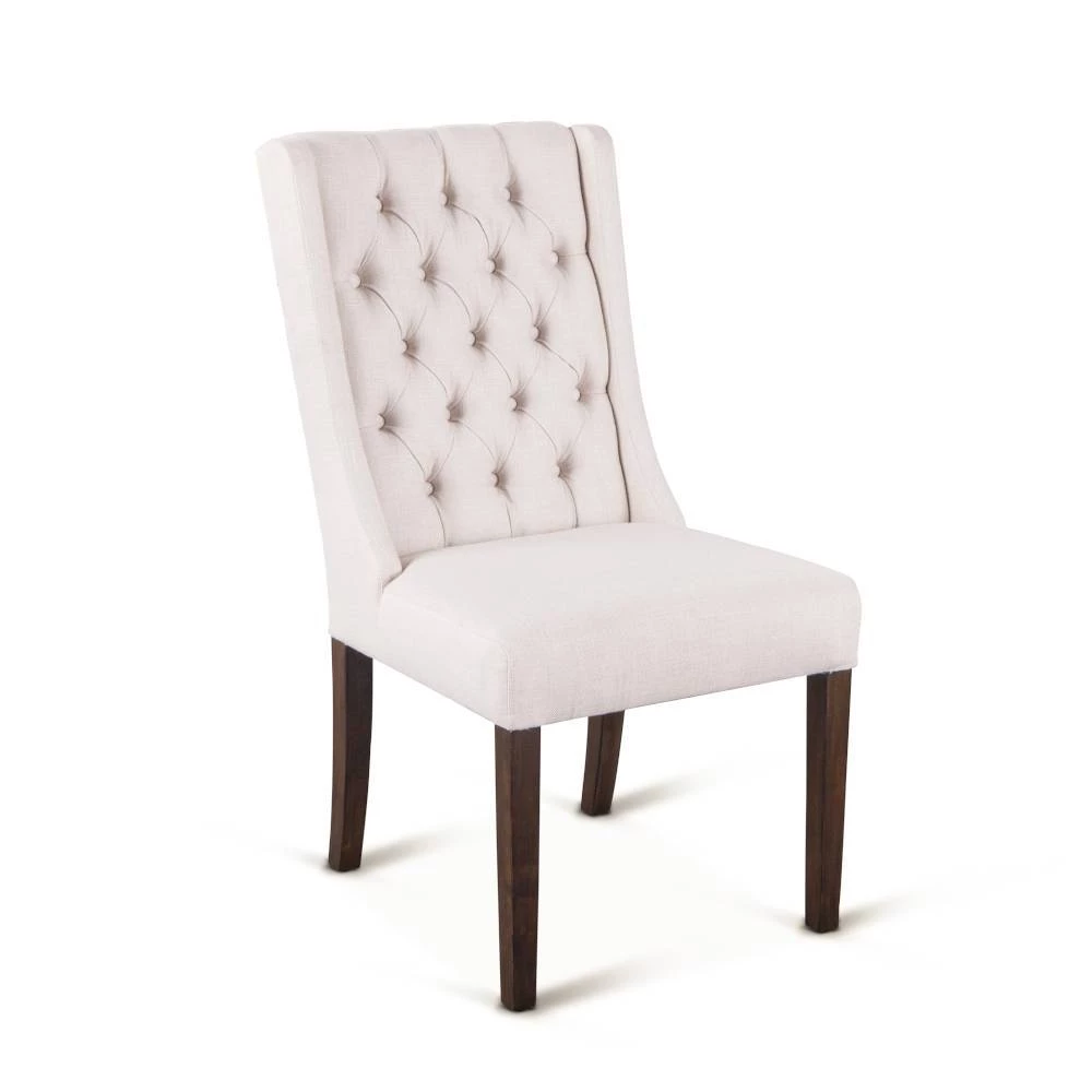 - Chair’s seat and seat back are upholstered in a linen, cotton and polyester blend fabric