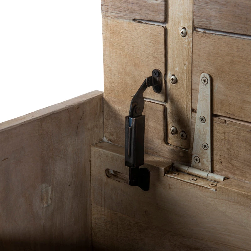 Across the front of the bench is a unique, geometric design of hexagon-shaped pieces of reclaimed wood that fit together in a simple yet intricate pattern. With its hidden storage area, this bench is perfect for accompanying a smaller more casual kitchen space or for adorning a foyer. This bench is pre-assembled.