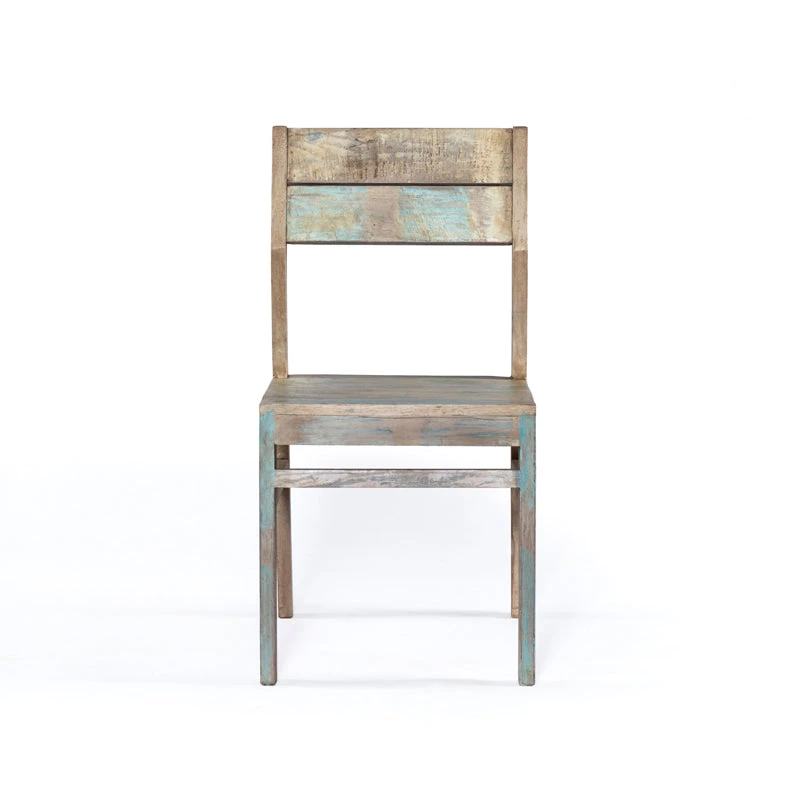 An airy pastel finish exudes a casual, coastal charm in the pieces of the Cordoba collection. This handcrafted solid wood dining chair is fashioned from reclaimed wood with a hand-applied patina finish on the wood that offers durability while showcasing the natural grain of the wood.