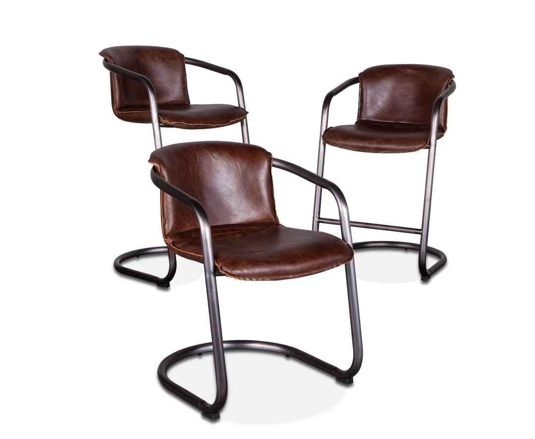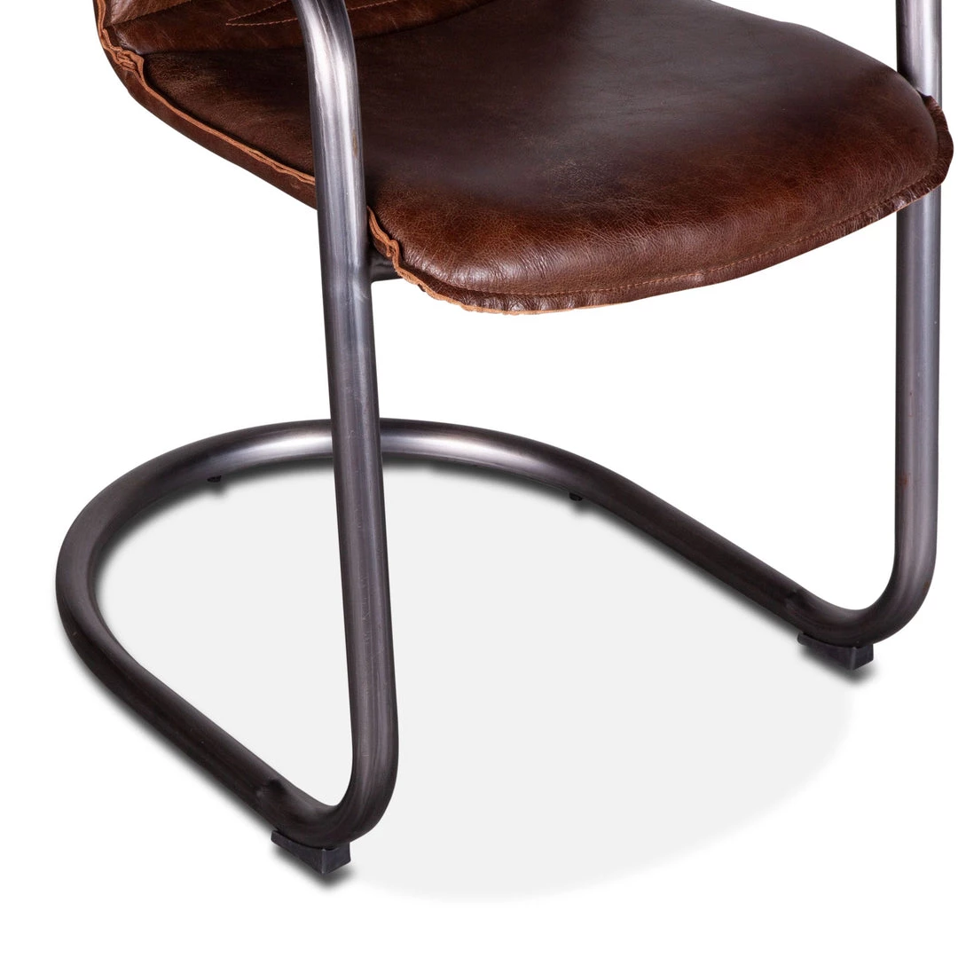 - Chair’s seat and seat back are upholstered in naturally distressed leather