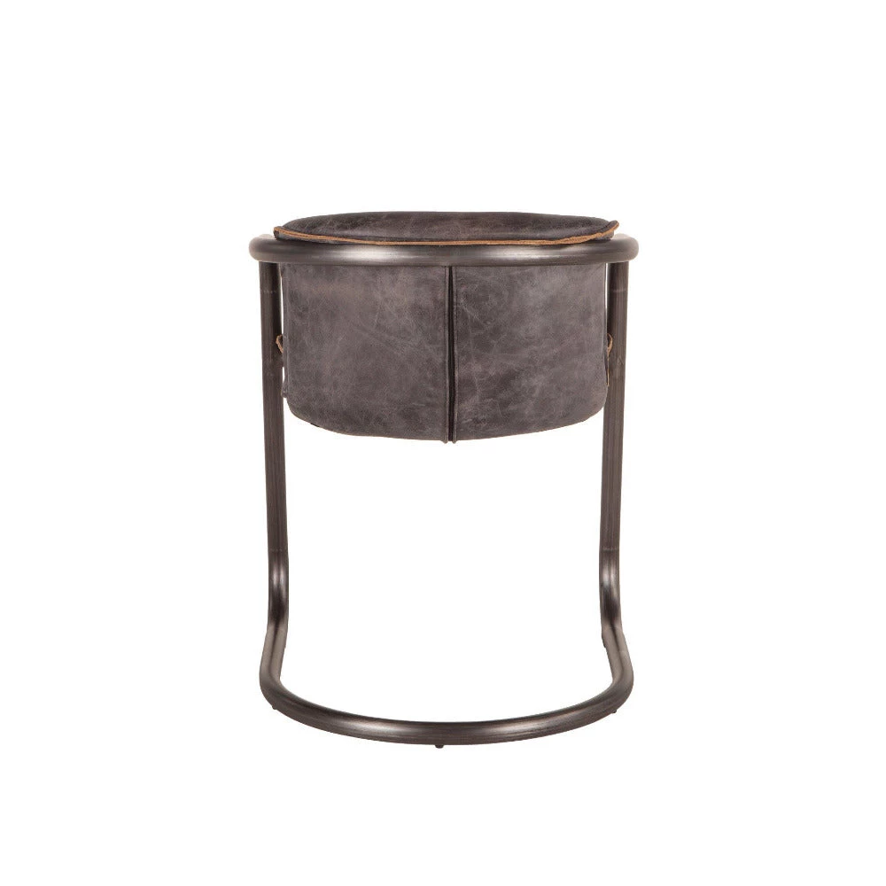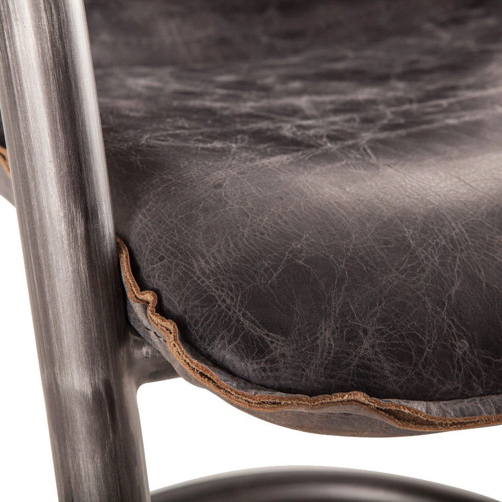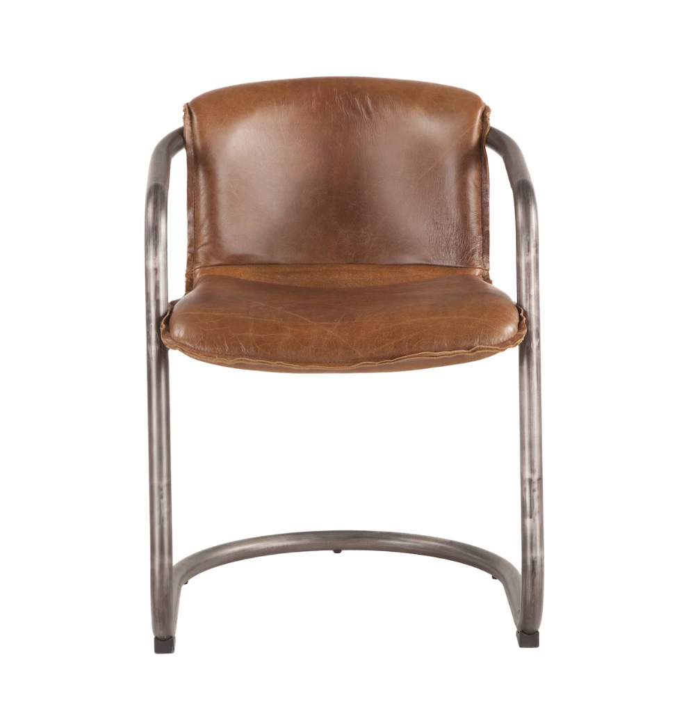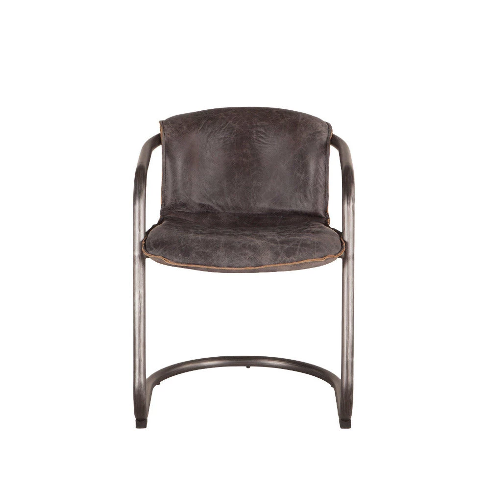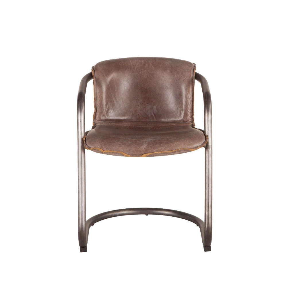 Combine with your favorite dining or kitchen table for a casual dining space, pair with a modern desk for a stylish workspace, or aide table for a comfortable cocktail and reading nook. This pre-assembled dining chair is ready-to-use and with its classic design and elegance, it will make an effortless addition to any home. The distressed leather seat has a soft feel for ultimate comfort, while the exposed trim provides vintage flair. The U-shaped steel frame and legs in rustic, brushed finish include levelers with caps to protect all types of flooring.
