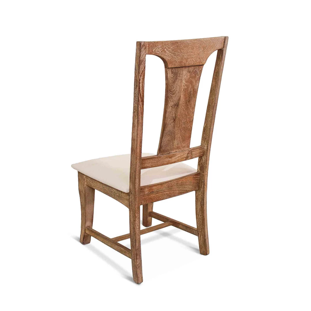 - Standard side chair made of solid mango wood with a cream, linen blend upholstered seat