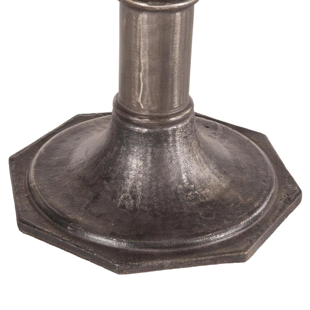- Antique-style pedestal base is cast iron with a natural patina finish