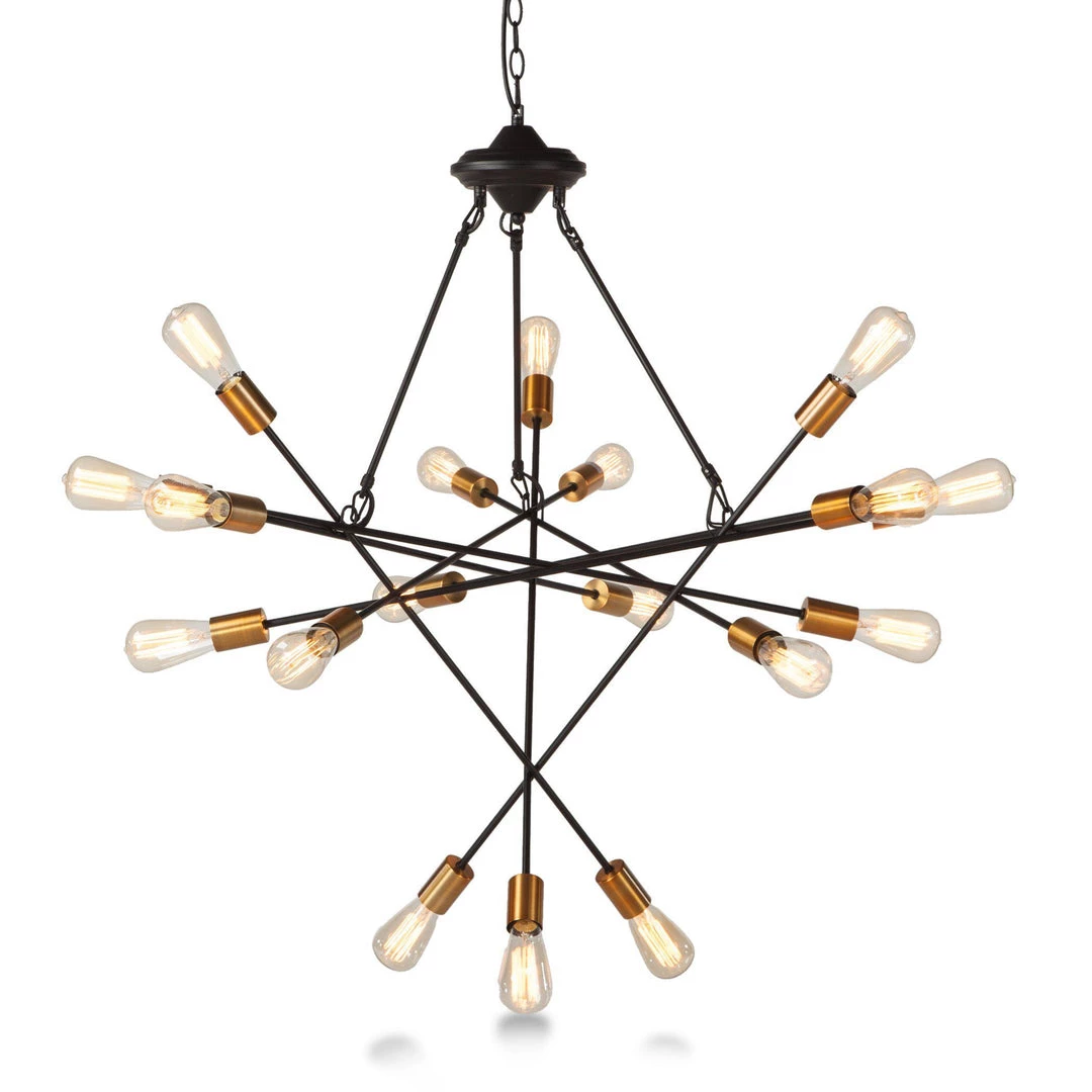 A perfect blend of industrial and modern elements, this beautiful multi-light chandelier features a starburst effect with its 18 total Edison-style bulbs, each affixed on metal rods that stand out in different directions. The brass finish of the bulbs’ base adds an extra pop of color, making this unique chandelier the perfect industrial accent that will work in any decor. Electric powered and UL-listed for safety, this chandelier is sure to make a fun and distinctive addition to any room of your choosing.