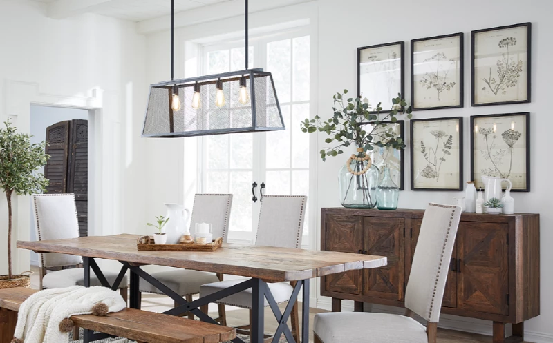 - Oversized chandelier is perfect for hanging over large dining tables or gathering spaces