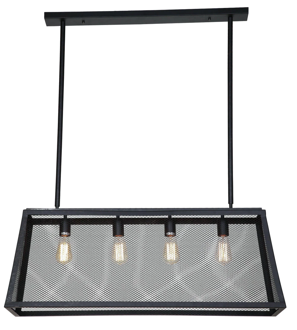 Each piece in the Element collection blends contemporary designs with old world charm to create not only an artistic illumination piece, but a unique focal point to every room in your home. Beautiful ironwork and rustic finishes in a variety of colors and materials make each piece in this industrial style collection captivating. A perfect blend of industrial and modern elements, this hanging ceiling light includes four Edison-style bulbs that shine through the matte black, mesh metal lamp shade. With a 2-foot long black cord, this electric powered and UL-listed lantern style hanging ceiling light is sure to make a distinctive addition to your home.