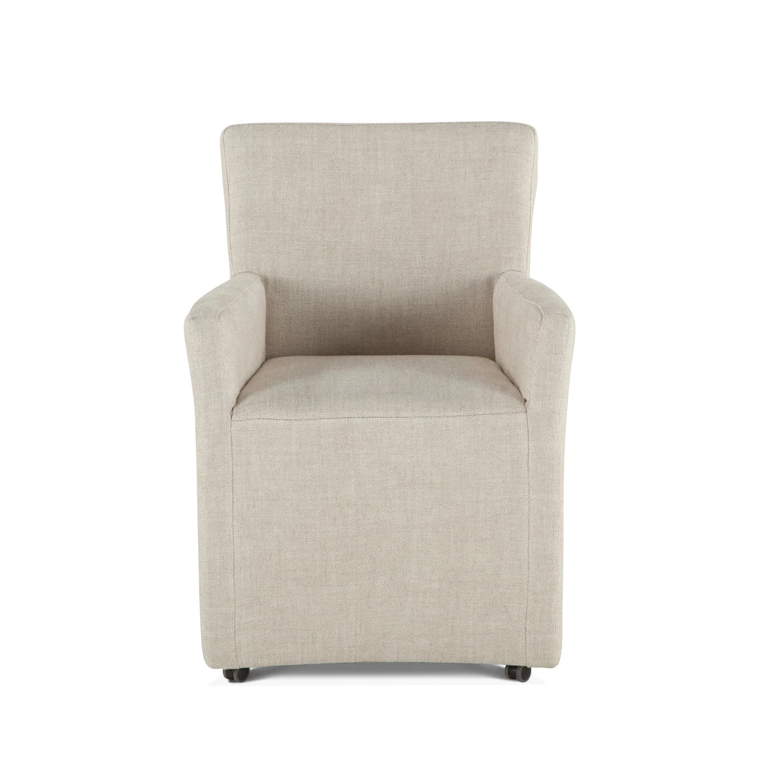 - Chair features straight edges that provide clean, elegant lines that create a warm and inviting space Includes four casters for smooth and easy movement