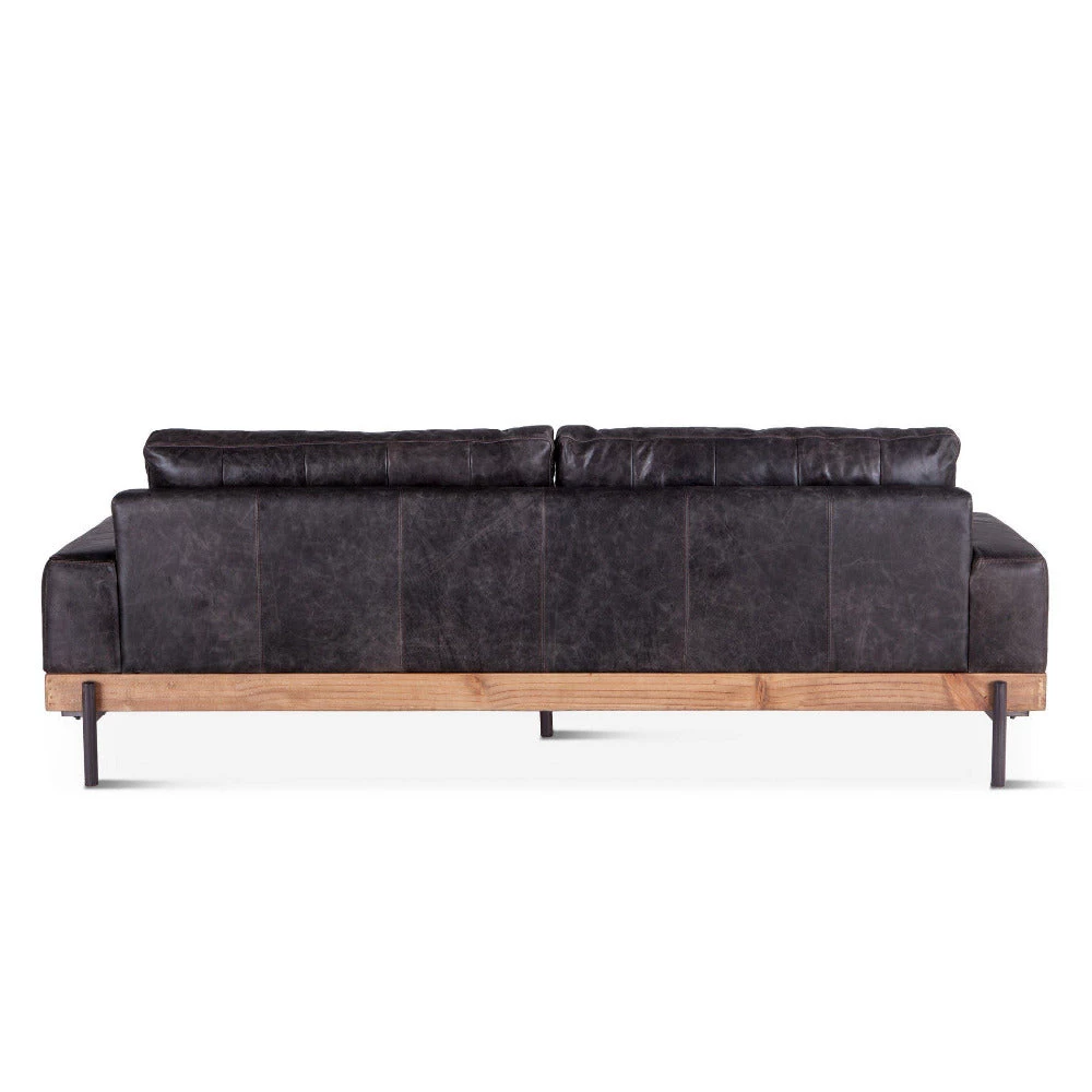 - Sofa is upholstered in vintage washed, top grain antique ebony leather