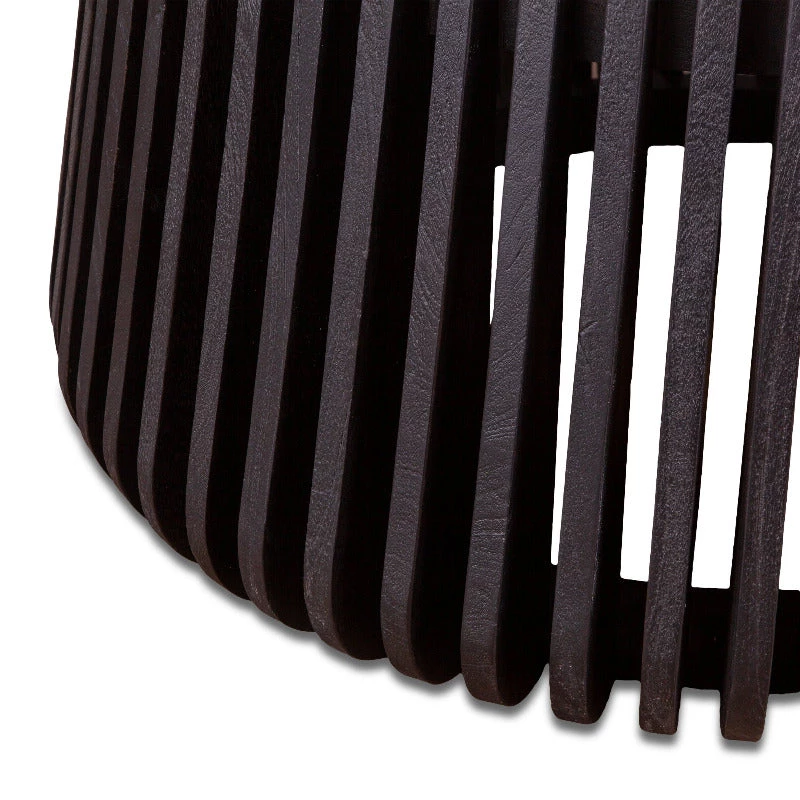 - Base made with solid mango wood in a modern walnut finish