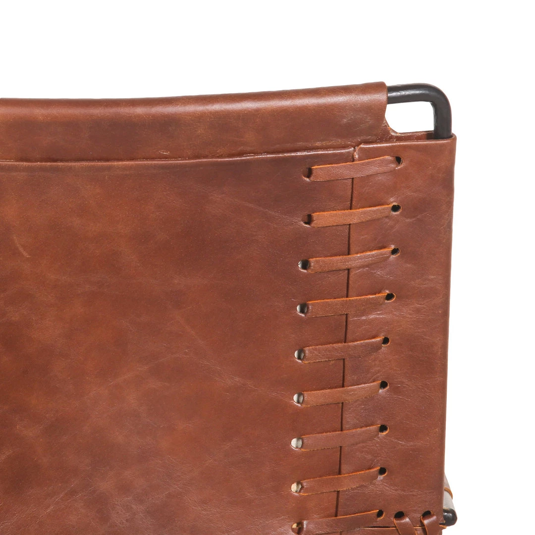 - Seat and seat back are upholstered in chocolate or tobacco leather