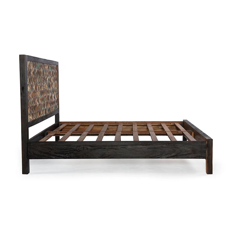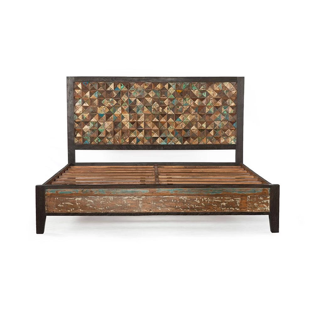- Reclaimed teak wood headboard with mango wood frame in rich java finish