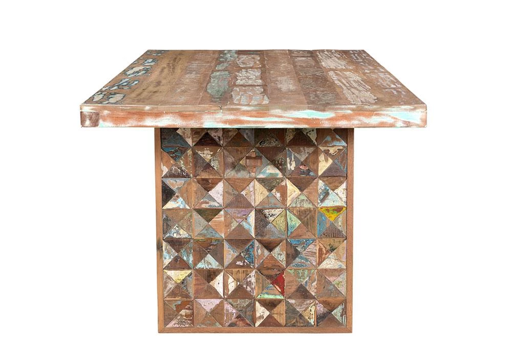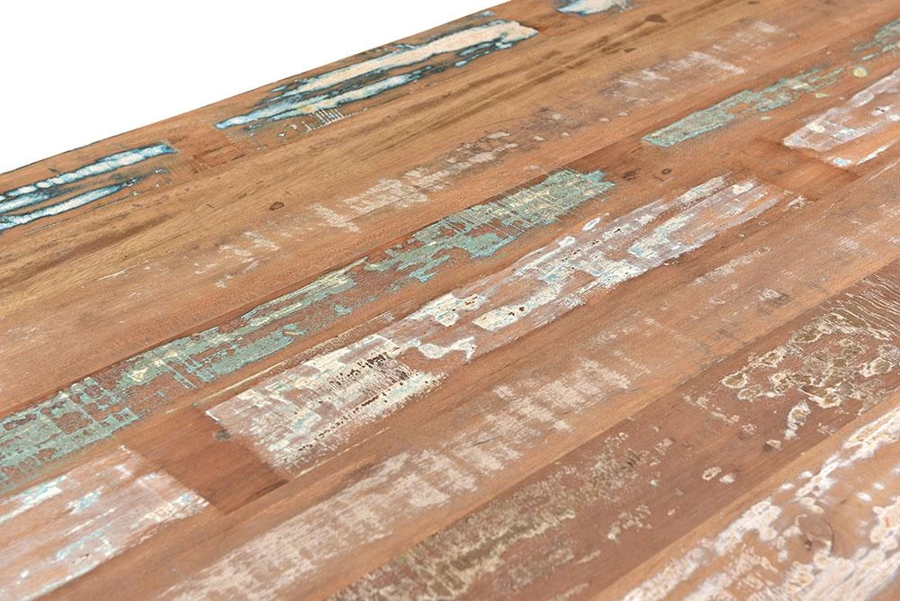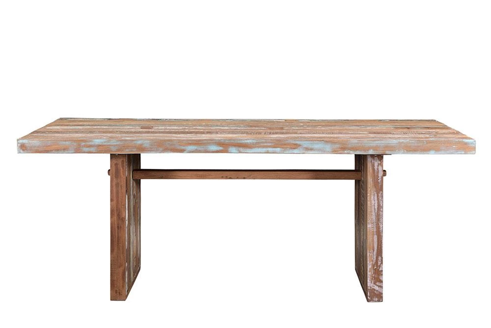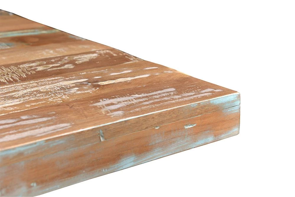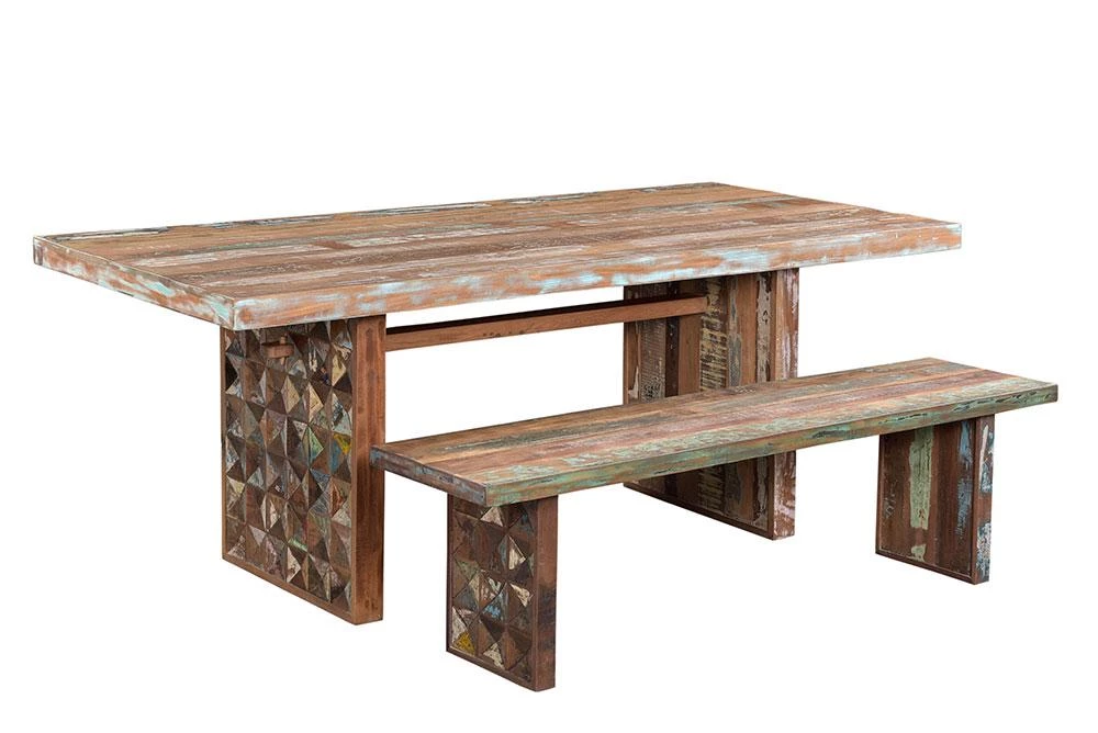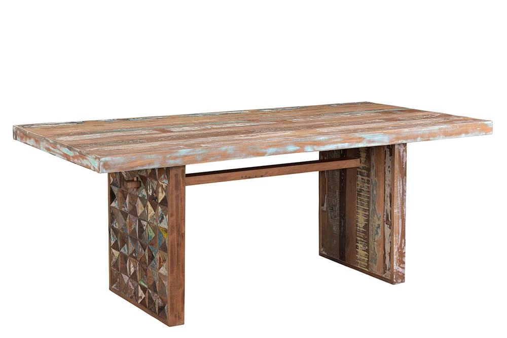 - Trestle base with reclaimed teak block legs have multi-color elements, making each piece unique