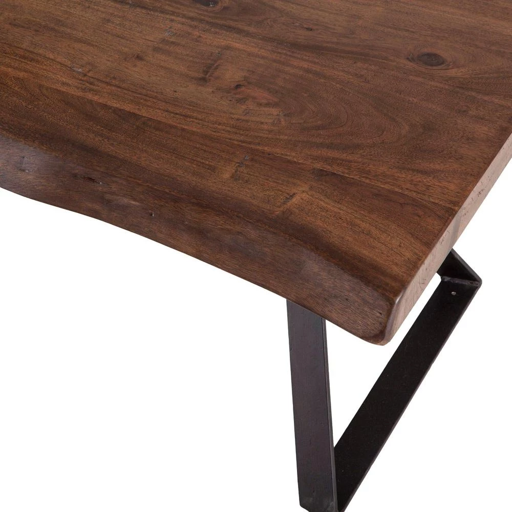 - Hand forged iron legs in antique zinc finish contrast beautifully with the natural acacia wood top