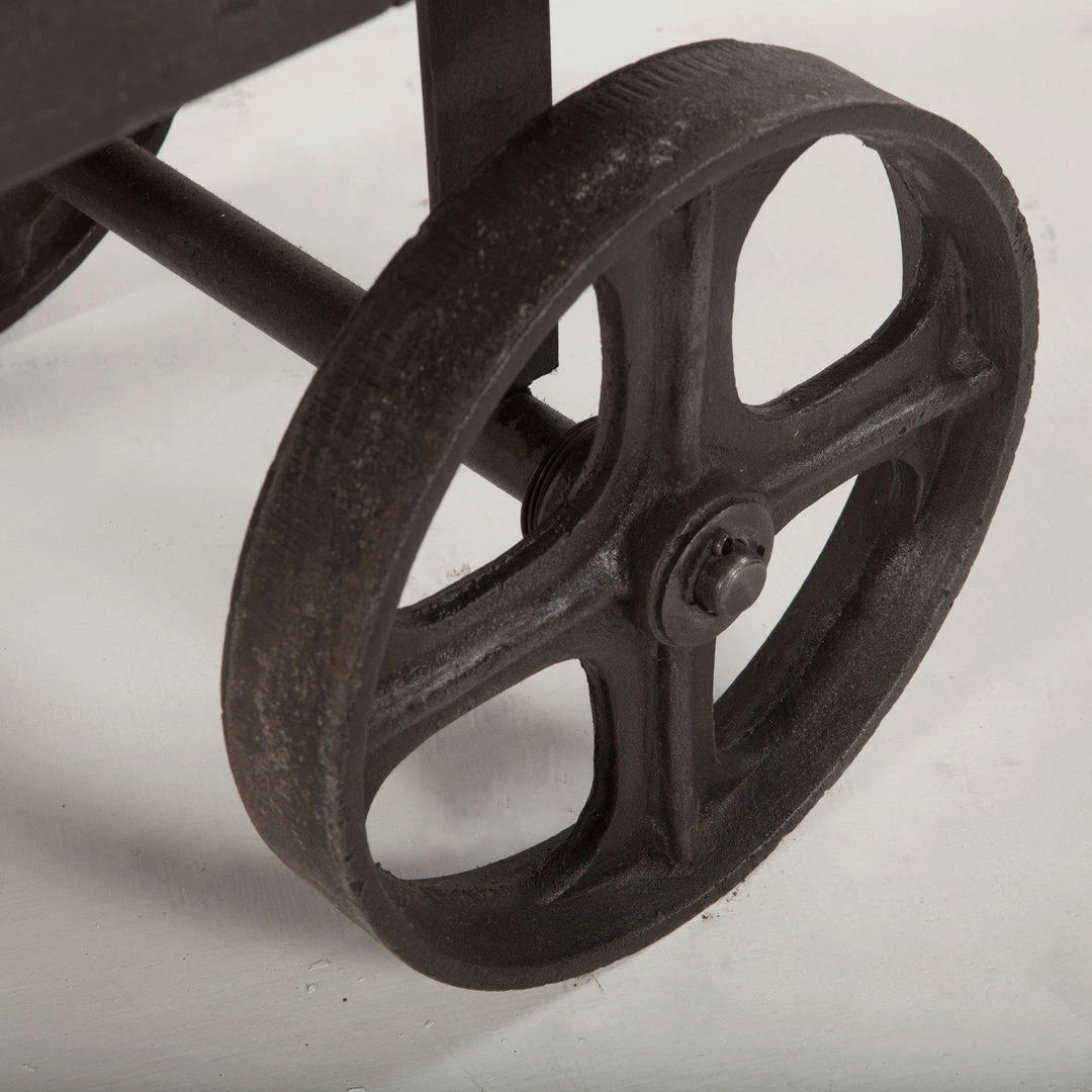 - Utility cart includes four large rolling wheels as legs