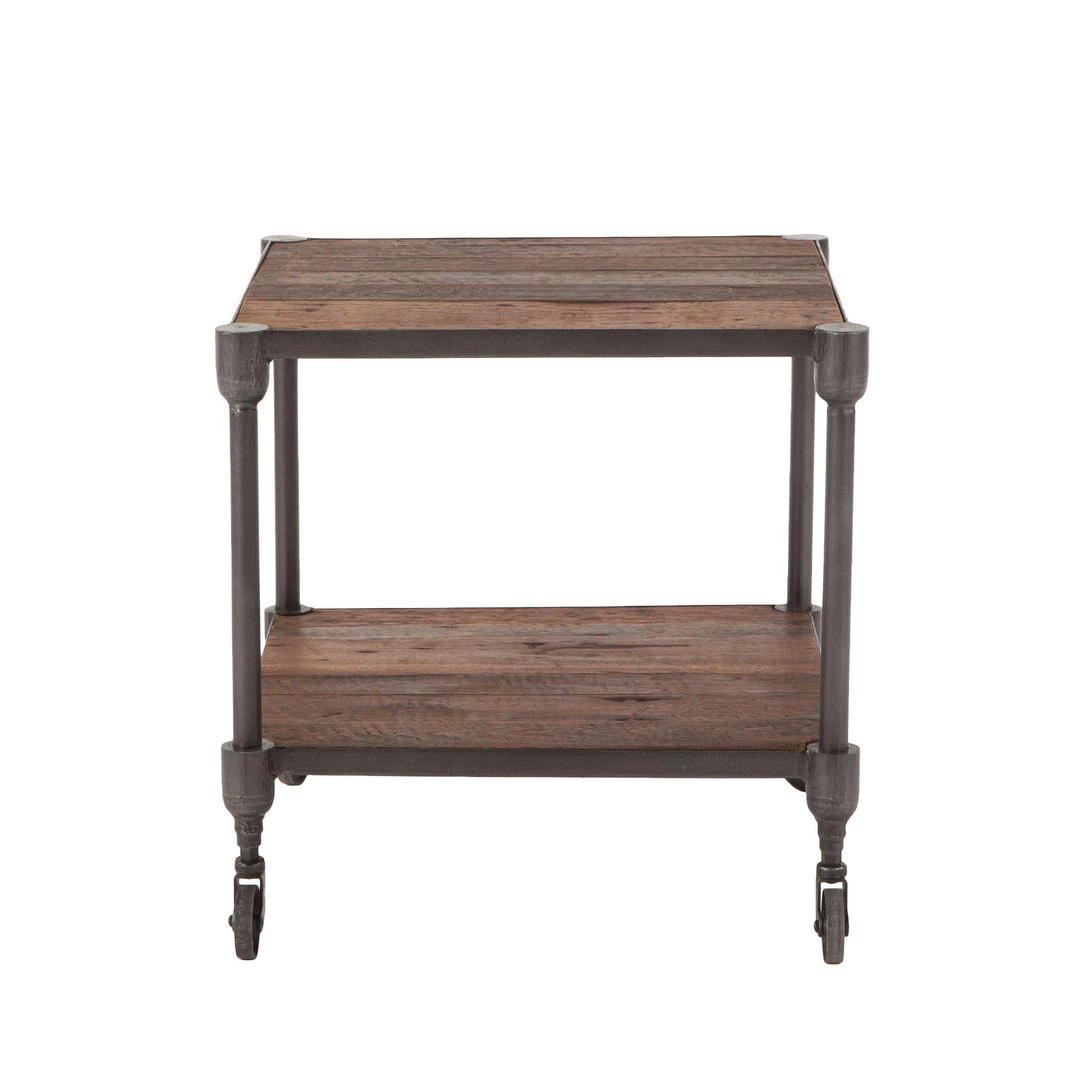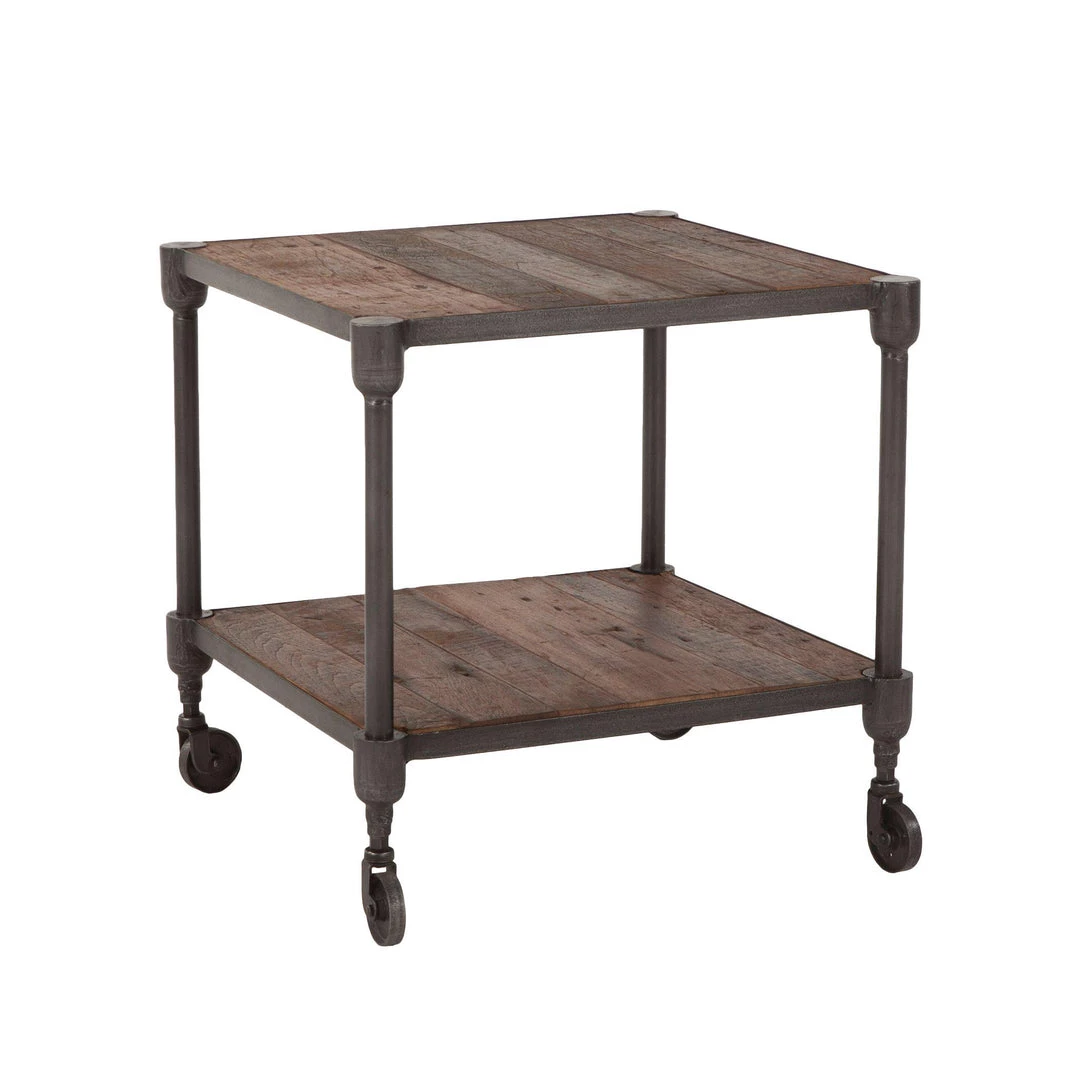Crafted exclusively from reclaimed materials, each piece in the Paxton collection is visually stunning and is sure to make a lasting impact in your home.This side table’s frame is recycled iron in gray zinc finish, along with the four operable wheels affixed to the base that afford ease of transportability. With the additional shelf fixed below the table top, this side table affords extra space to hold all your favorite magazines. The side table features a panel design in the reclaimed teak on the table top and shelf.
