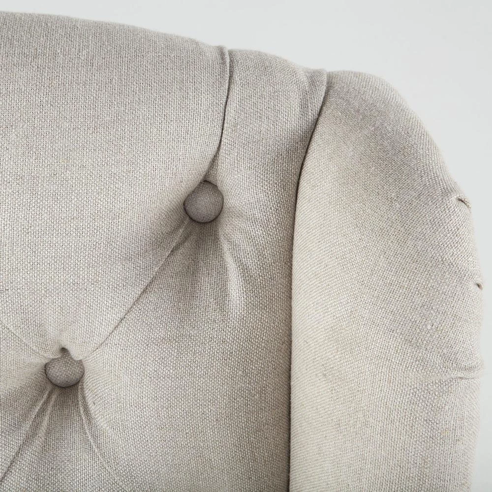 - Upholstered in an off-white linen and jute blend fabric